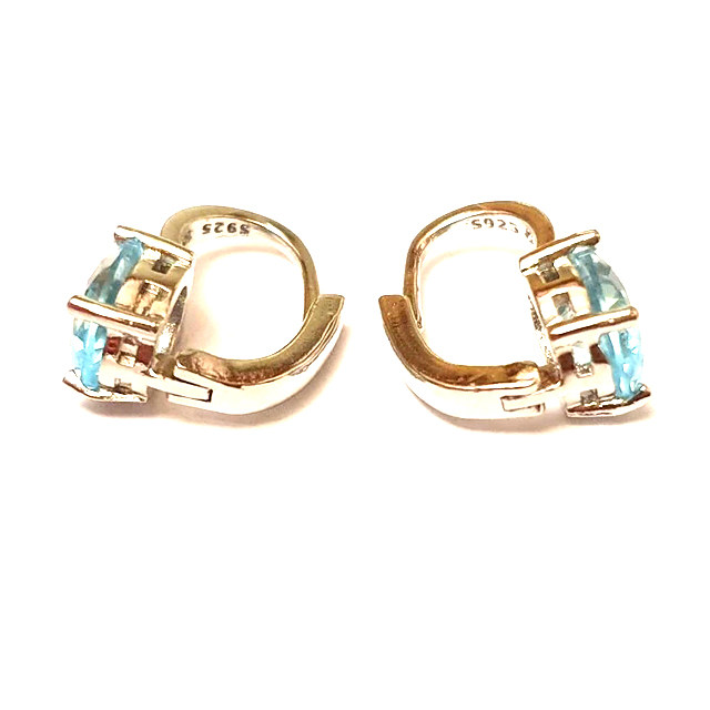 Sea-Blue Silver Sapphire Gemstone Earrings